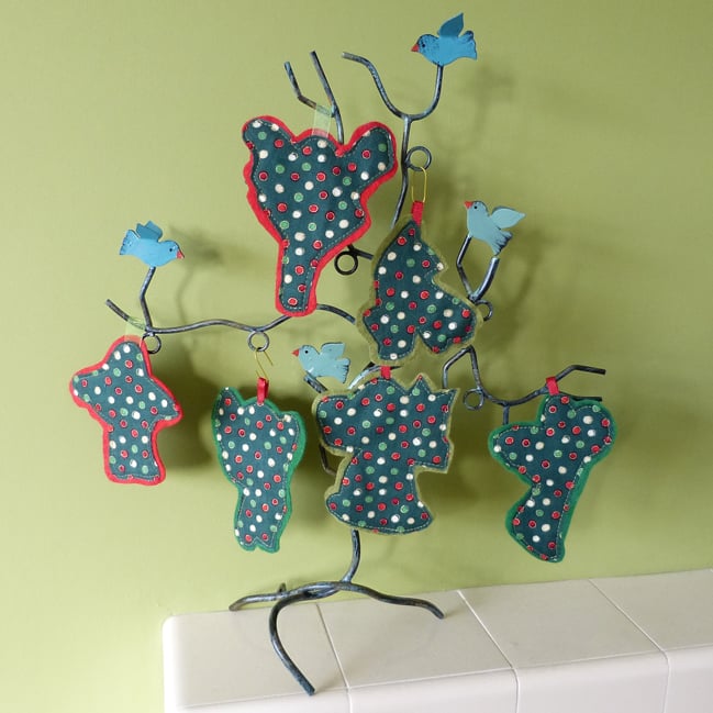 They are cotton and backed with felt. I have sewn a contrasting cotton to the back of the felt so there is visual interest from all sides as they hang. There is gold detail to the printed Fairy fabric.