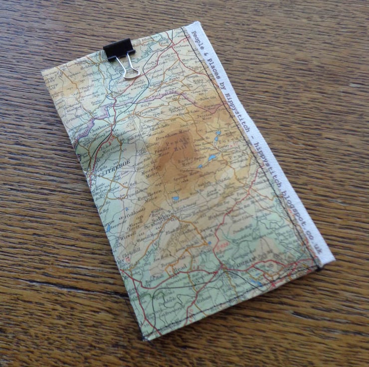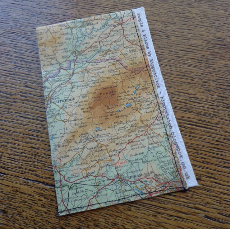 The vintage map pouch shows Clitheroe and Pendle Hill on one side and Longridge Fell and Dinckley on the other.