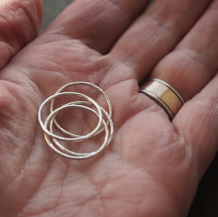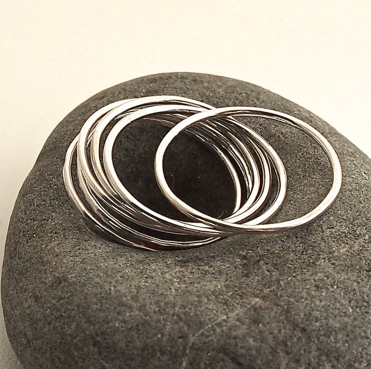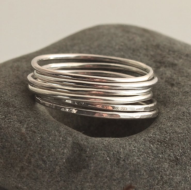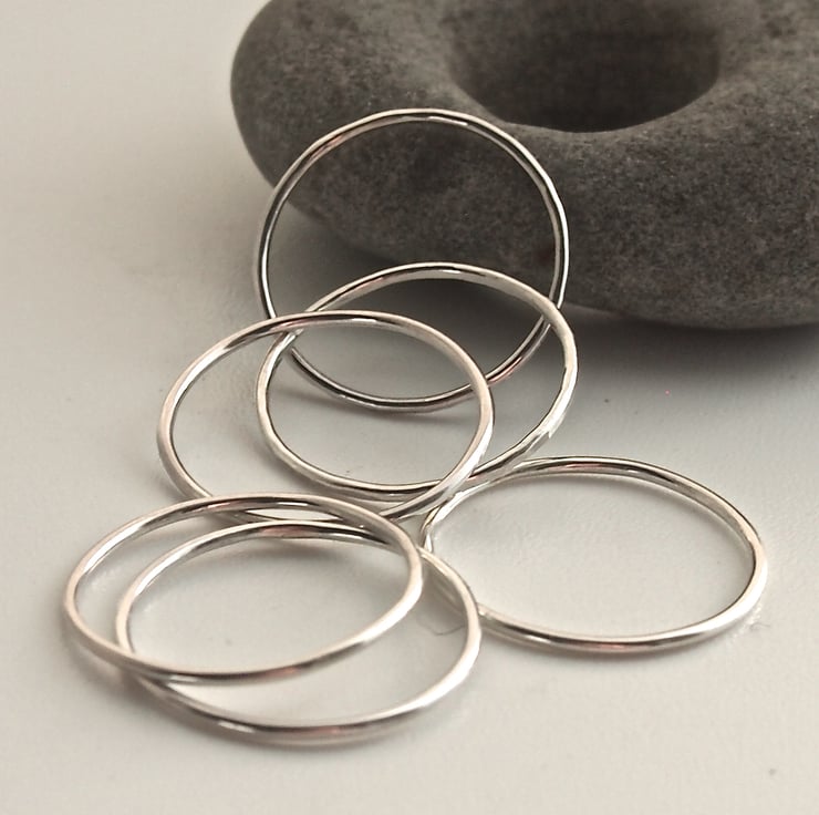 A set of six silver skinny rings gently hammered for extra sparkle or left polished and plain - just leave a message to say whether you would like them plain or hammered and how many of each. These are made from 1.2mm sterling silver