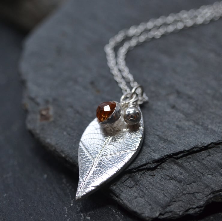 Birthstones make a beautiful, meaningful piece of jewellery that can be treasured and handed down the generations. This leaf pendant is unique - no one else will have one quite like yours.