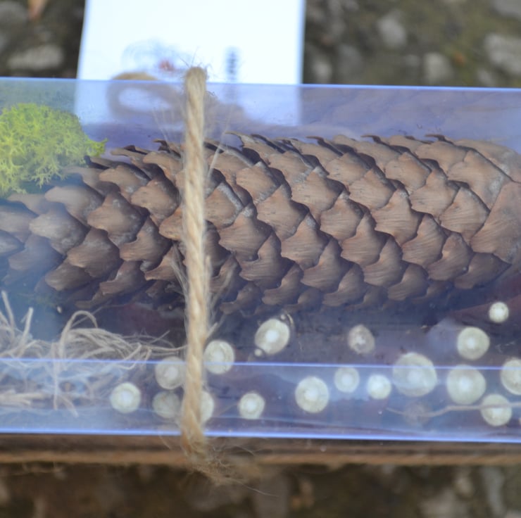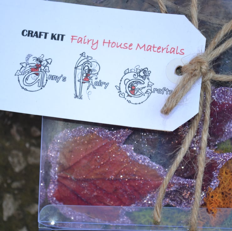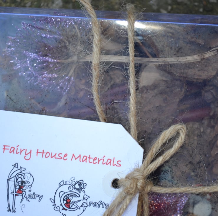 This is a delightful collection of twigs and natural elements, including various types of pine cones, glittered leaves, seed pods, glittered thistle head, various colours of moss, bark and a handmade mushroom. Find the base of a fantastic tree or a sheltered little nook in the garden and let your imagination go wild to create a magical little dwelling for the wee folk.