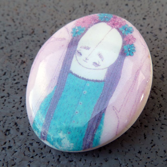 This listing is for a very cute and dainty brooch featuring Twinkle & Gloom artwork. It is made from white resin, the method used to transfer the image to the fimo creates a lovely vintage/distressed feel and is coated with resin for a lovely sheen.