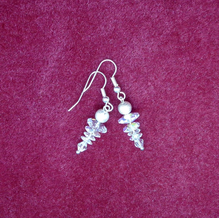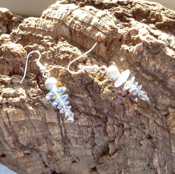 All the crystal beads are genuine Swarovski crystal (basically, the best in the business!) and silver stardust balls add to the lustre. The findings (pins, hooks etc) are all silver-plated.