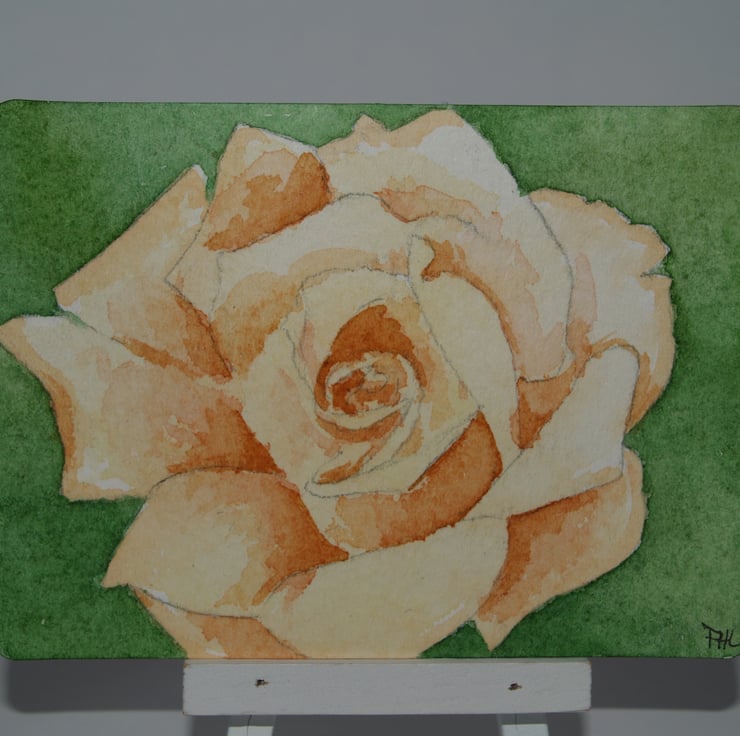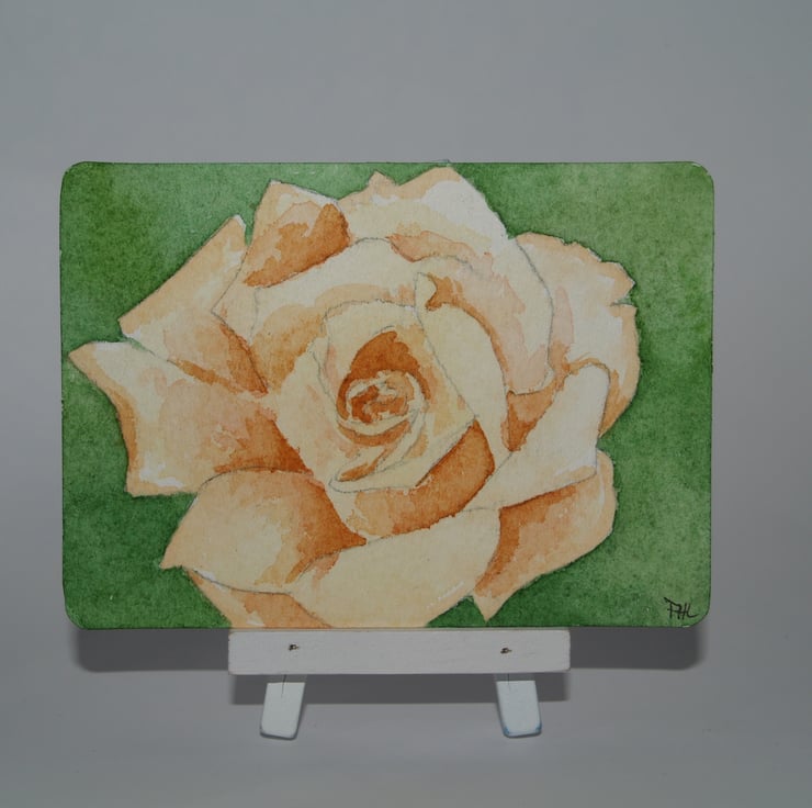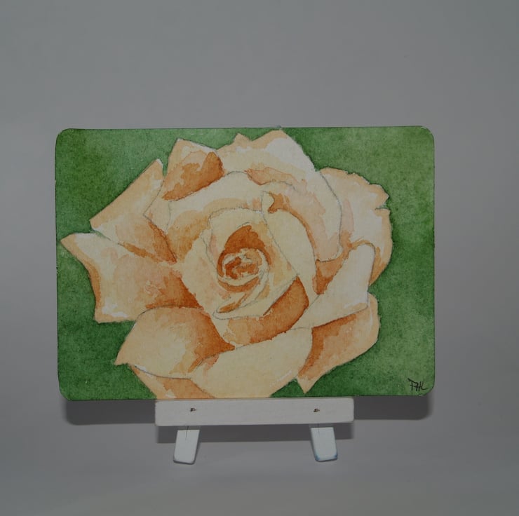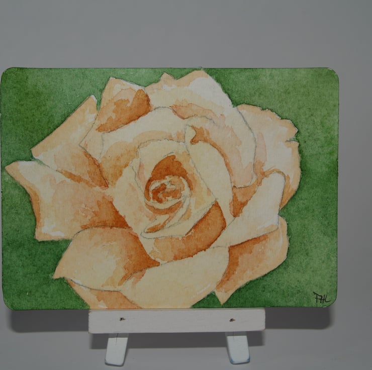This ACEO is an original watercolour of a delicately coloured tea rose measuring 2.5 x 3.5 inches (63 x 89 mm).