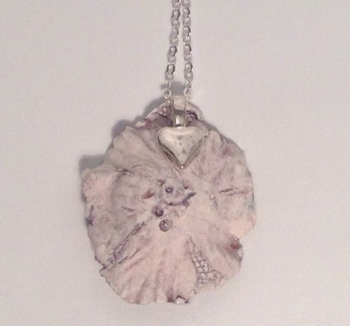 The porcelain is attached with to an 18 inch silver chain and fastened with a lobster clasp.