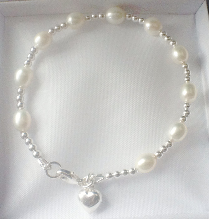Sterling Silver Pearl Heart Charm Bracelet - I made this bracelet using Ivory White Freshwater Cultured Pearls and 925 Sterling Silver seamless beads. I attached a Sterling Silver heart charm and finished with a Sterling Silver lobster clasp.
