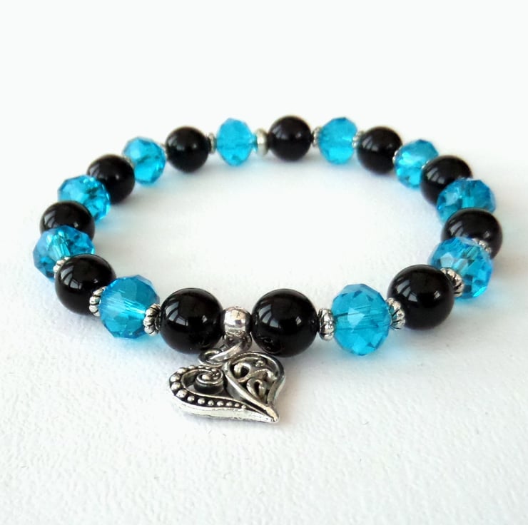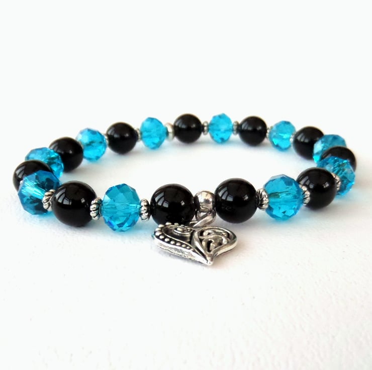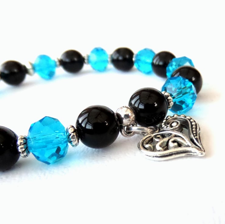 This bracelet uses lovely contrasting vivid blue crystals against polished black onyx and the result is stunning!