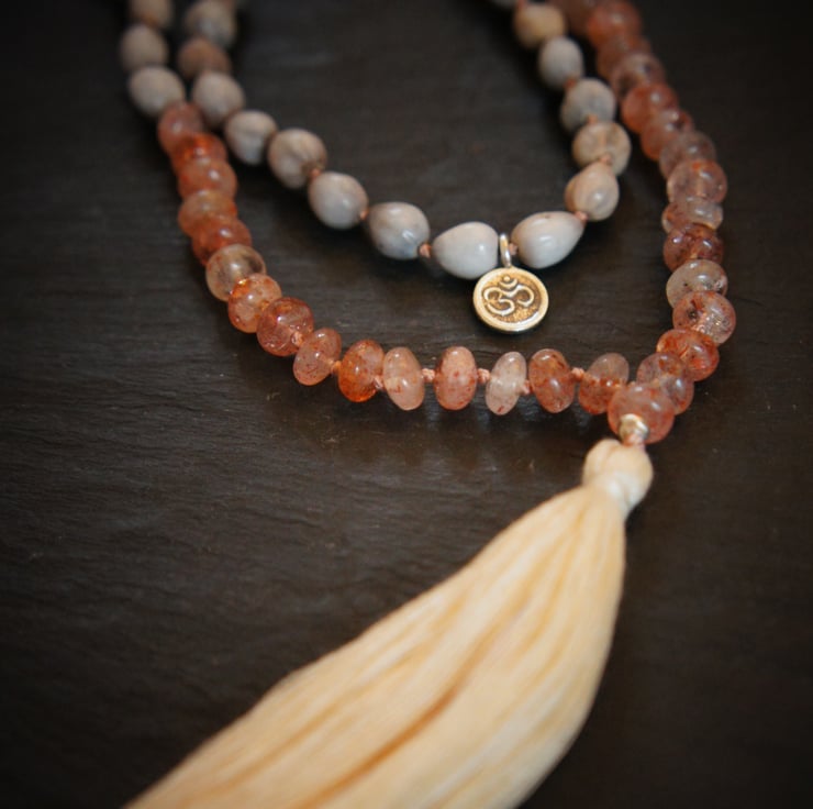 A Sunstone and Vaijanti Seed Solar Plexus Mala.