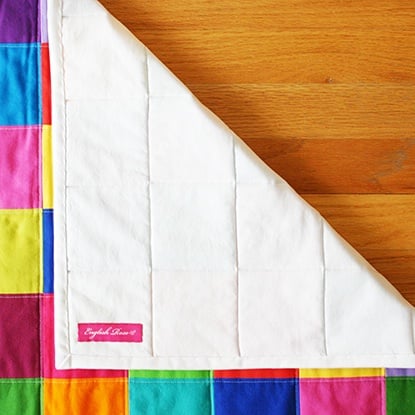 This machine sewn quilt is made from high quality prewashed Kona Cotton fabric. The batting is 100% polyester (non allergenic and flame retardant) and it is over-sewn using straight lines to form a square pattern on the reverse reflecting the square detailing on the front. The reverse of the quilt is solid white, and the binding is sewn by hand for a neat finish.