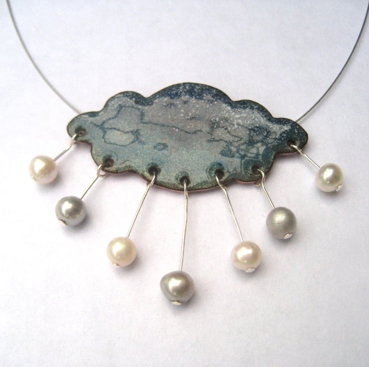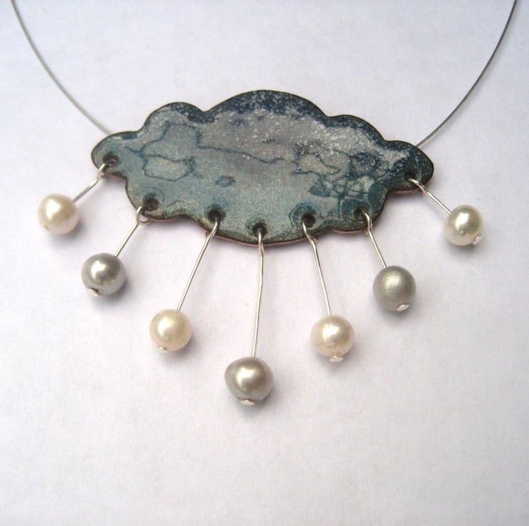 Freshwater pearls lend themselves to appear as raindrops, so with all this in mind, decided to make my own enamelled version of a Welsh raincloud.!