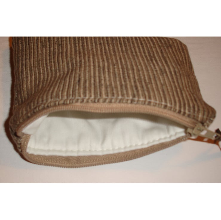 This zipped purse has been made with a rugged beige and brown rough stripe fabric which would suit a man bag style.