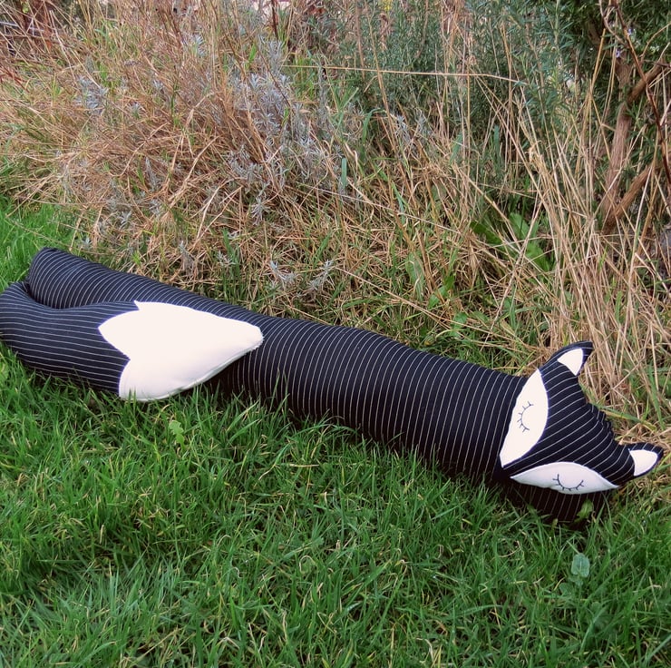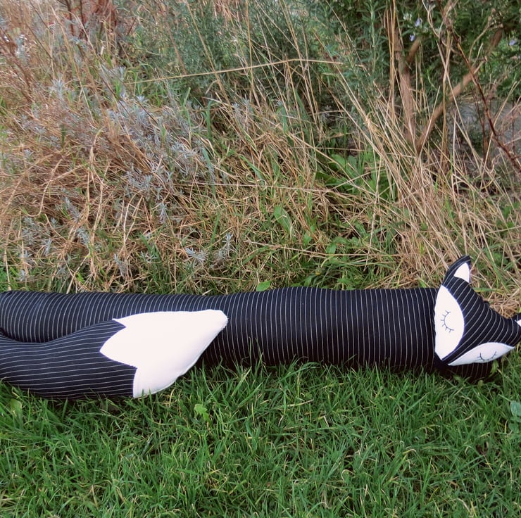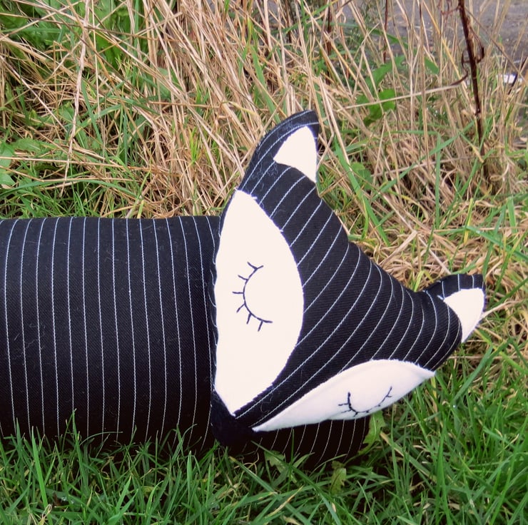 Snoozy fox is made from a heavyweight pinstripe cotton in black and white.
