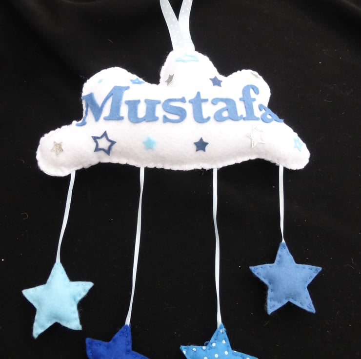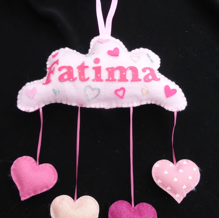 Personalised Cloud name banner, can be hanging hearts or stars