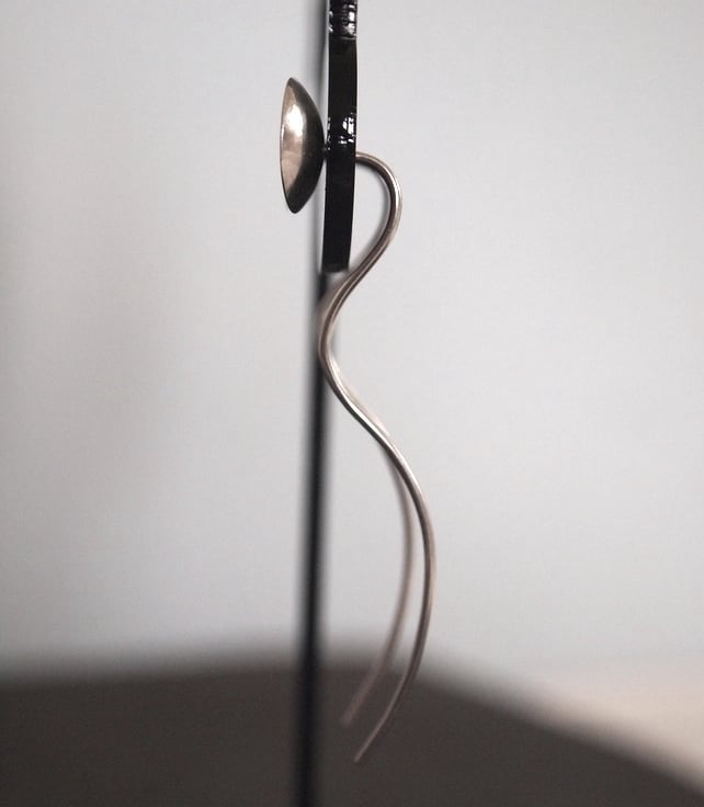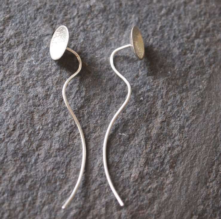 These contemporary earrings are based on a simple stud earring but instead of having a scroll back they have an extended ear wire that hangs down the back so that they stay in place without the need for an earring back.