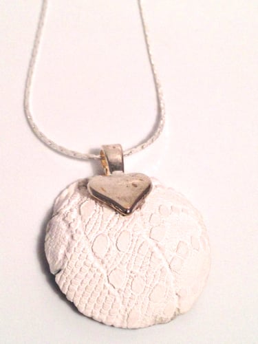 The porcelain is attached with a silver heart bail and chain.