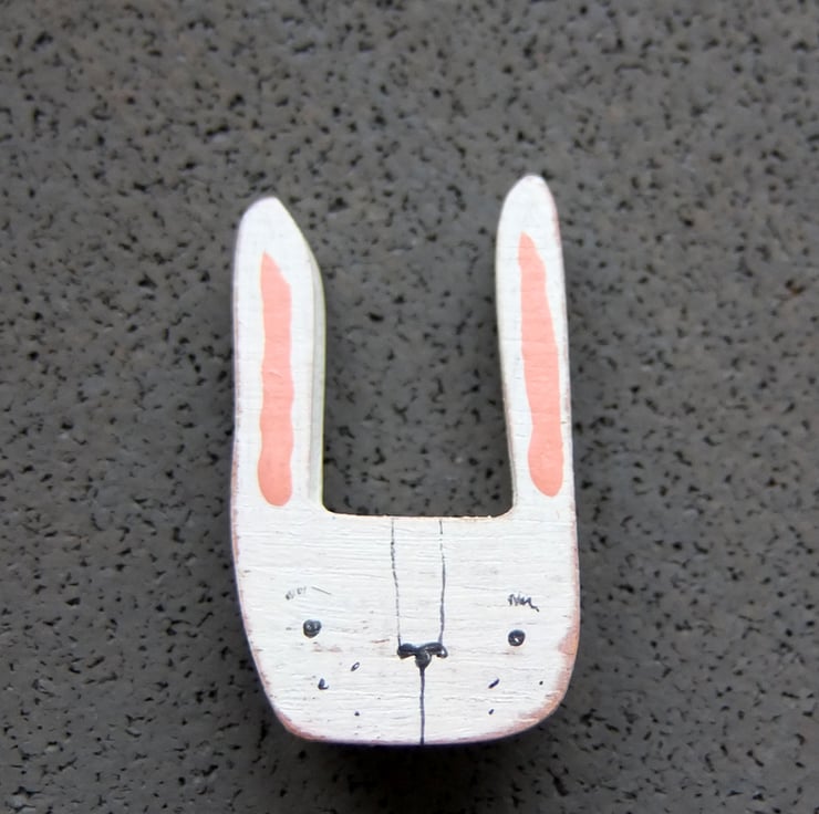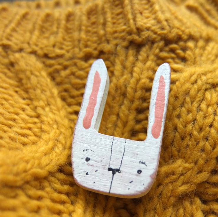 This listing is for a very cute and dainty hand cut and painted wooden brooch. The brooch is rustic in design and was inspired by distressed antique wooden toys. The entire piece is made by hand by Twinkle & Gloom which means every rabbit is one of a kind.