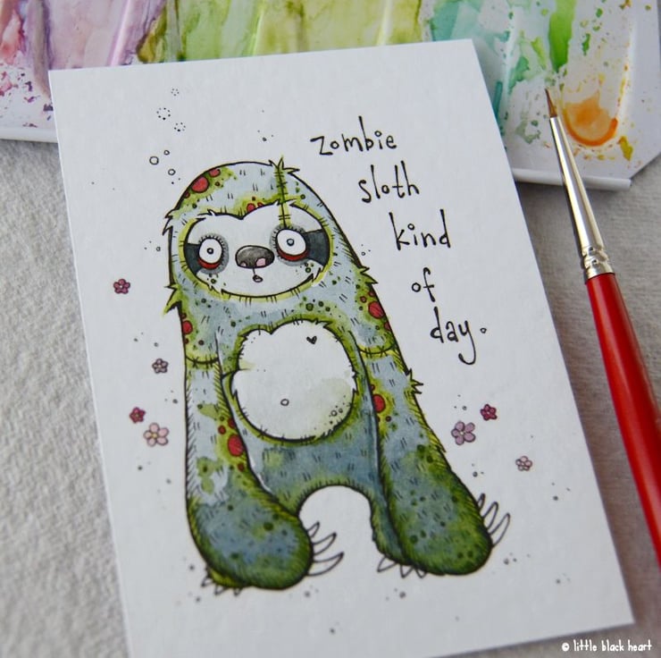 original artwork in artists pens and watercolour paints, on textured white 300gsm cardstock. drawn with a tiny 0.05 nibbed pen, and carefully painted with just the very tip of a tiny paintbrush.