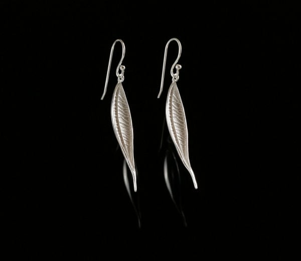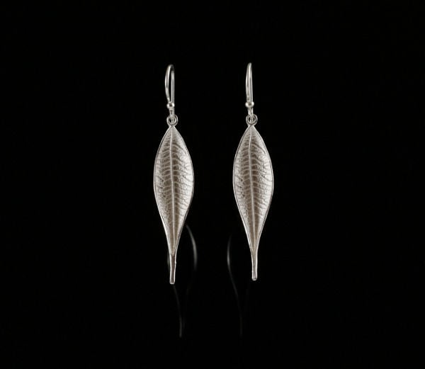 Earrings in the form of a beautiful, curved leaves, entirely made of sterling silver.