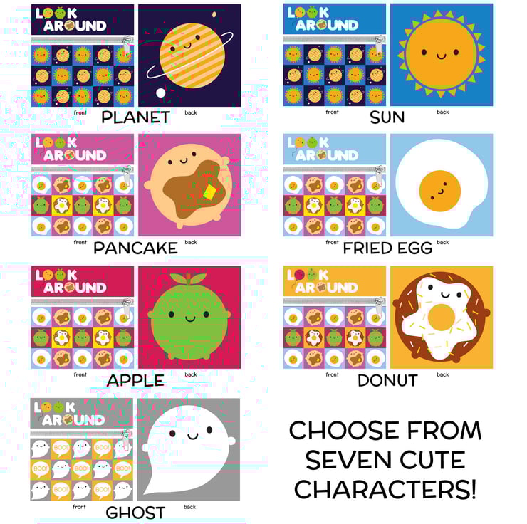 Choose ONE of 7 Look Around characters available - Planet, Sun, Ghost, Pancake, Egg, Donut or Apple. Leave a note at checkout with your choice.