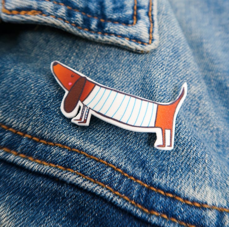 Original illustrations from my sketch book printed to shrink plastic, each piece is hand cut and baked before being varnished and mounted on a badge pin.