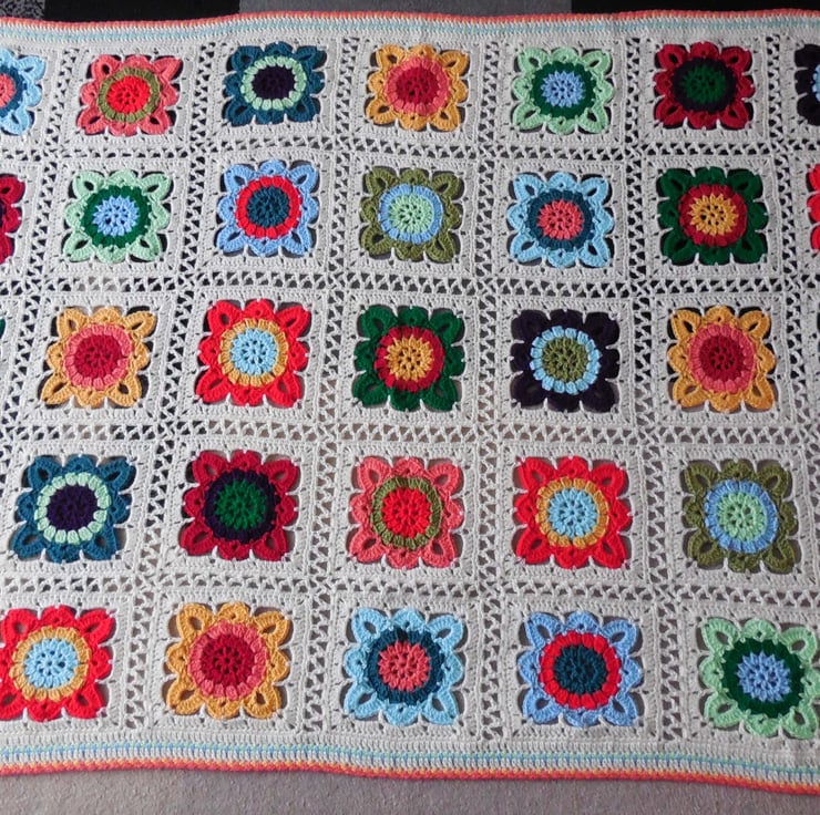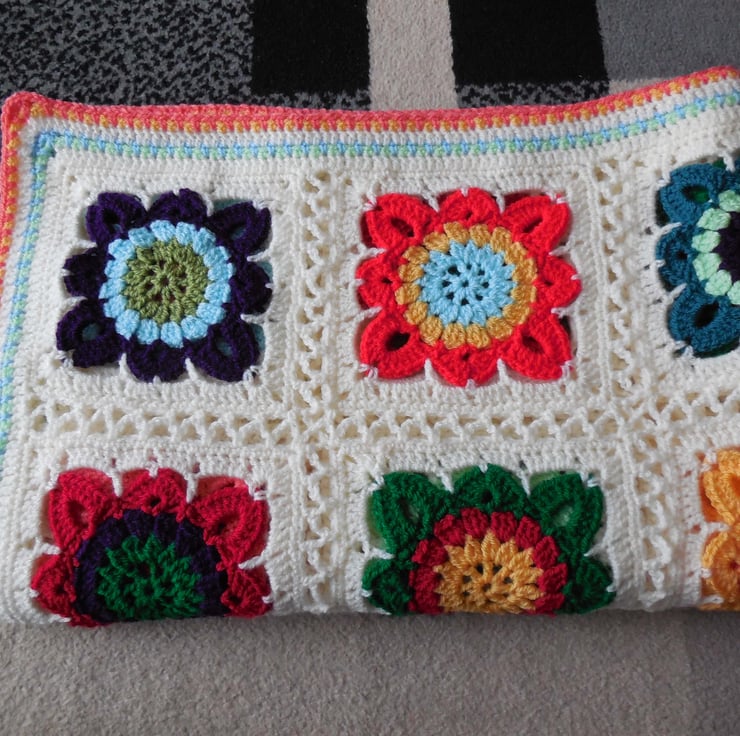 This is a lovely lightweight throw covered in bright colourful flowers surrounded by cream, lovely for spring.