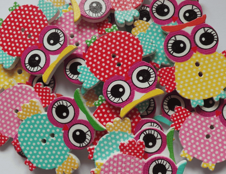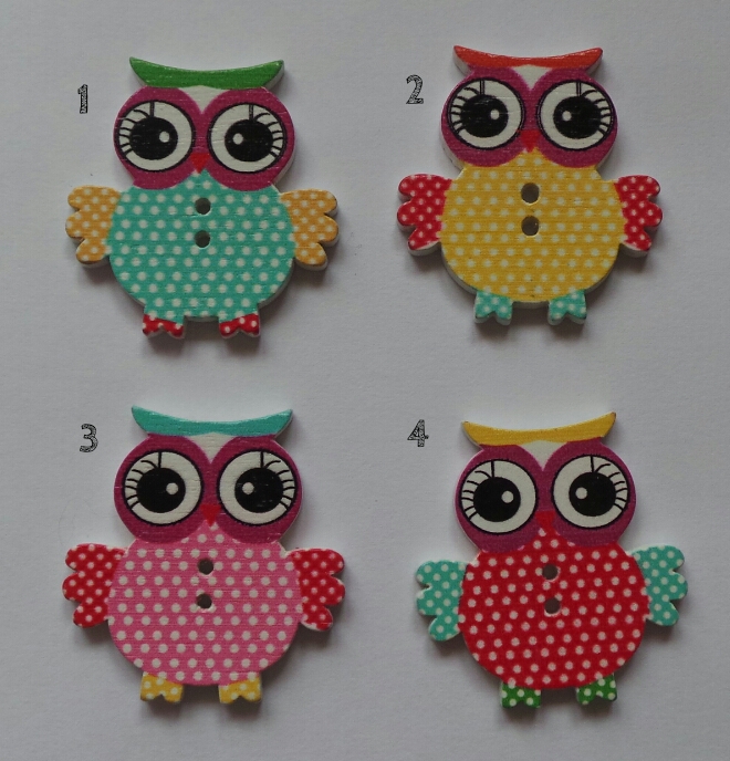 Cute little Owl wooden button brooches - 4 different designs polka dot
