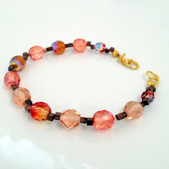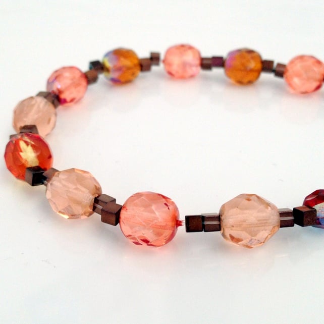The facets on the glass beads mean that they catch the light and twinkle as you move and the colours are very warming in shades of peach, orange, red and brown.