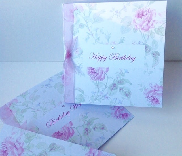 They are printed in a beautiful vintage floral,linen effect print and finished off with a delicate dusky pink,organza ribbon.