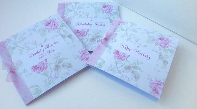 The listing is for a pack of three birthday cards,each showing a different sentiment.
