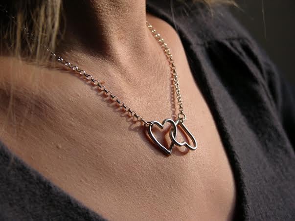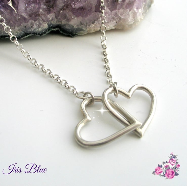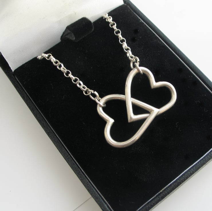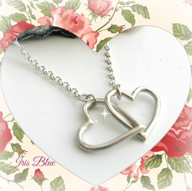 It features 2 linked hearts, a very romantic and beautiful necklace. Looks great on as the hearts have movement. Inter-twined heart are a symbol of everlasting love which is difficult to seperate