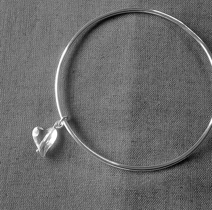 Sterling Silver Bangle with Crystal Heart Charm