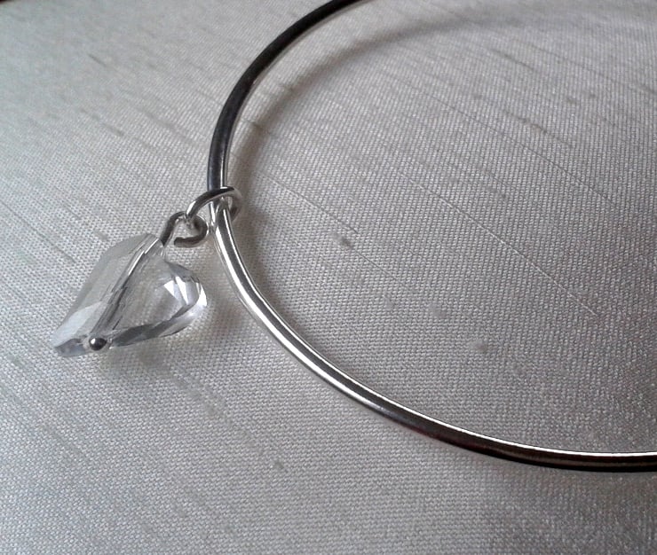 This beautiful bangle is a perfect gift for Valentine's Day or any romantic occasion! Made from sterling silver round wire, 2mm wide, it has been tumble-polished to a high shine. I have added a sparkling clear Swarovski® crystal 'wild heart' charm, attached by means of a sterling silver jump ring.