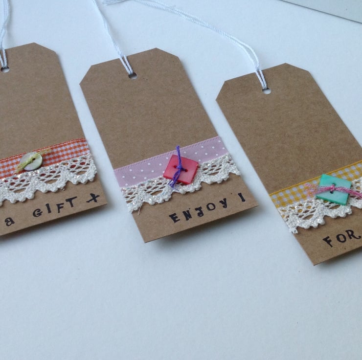 The listing is for a set of three handmade gift or message tags which can be personalised with your own sentiment if you wish.