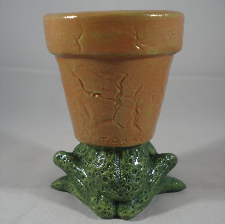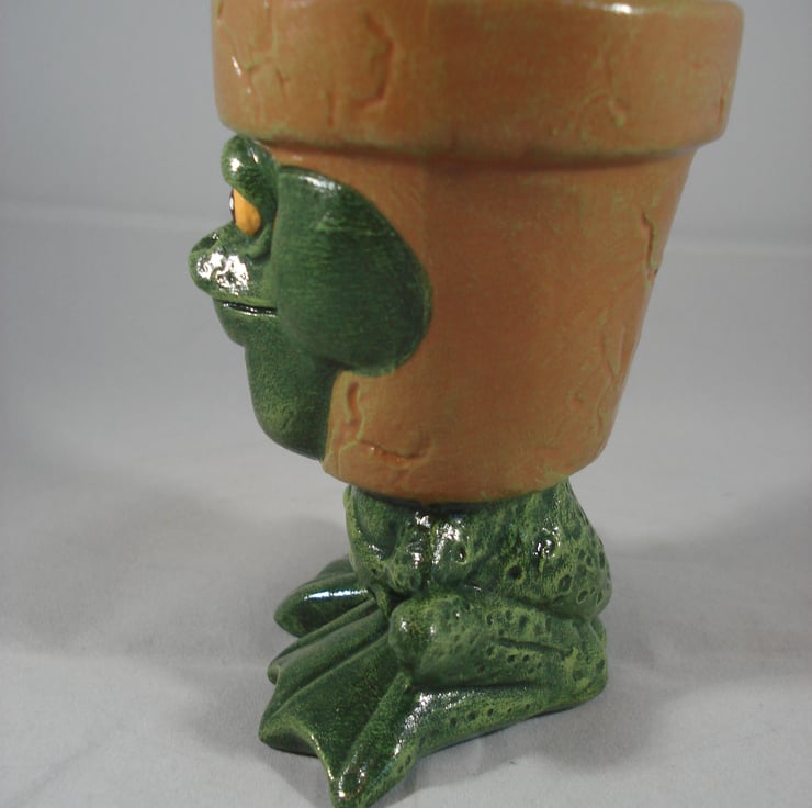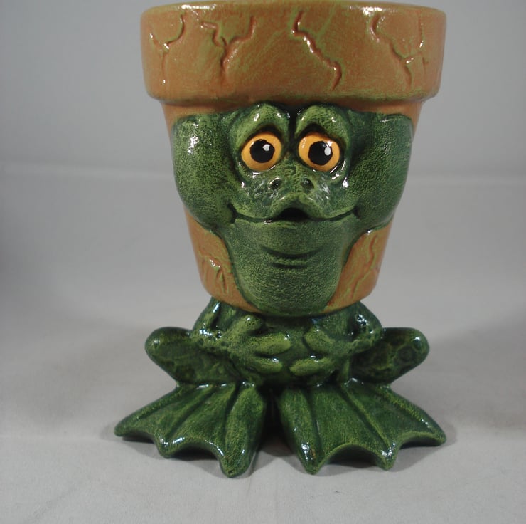 I have for sale a very small ceramic novelty plant pot, which was hand painted by myself. It is from a range called 'waddle Pots', this one is a frog or toad. Due to its size this one would be ideal for a candle holder or perhaps for a small artificial plant. This would make a fun and novel addition to anyone's home or garden, or perhaps given as a gift.