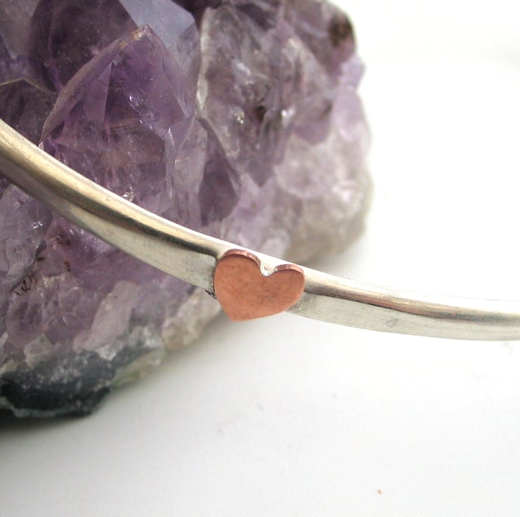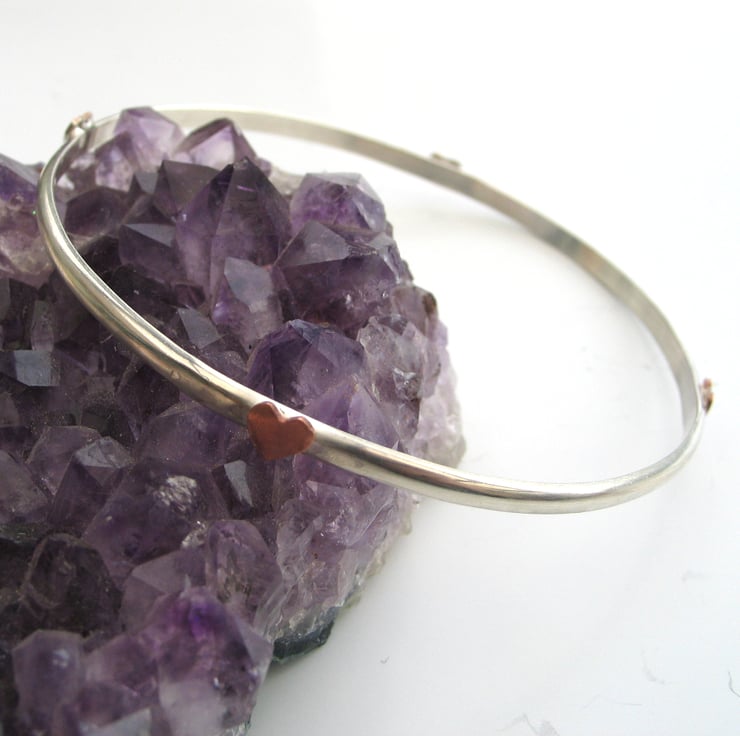 The bangle features 3 small copper hearts, However you could have more or less copper hearts to maybe add a symbolic meaning to you, so the hearts can be children, partner, grandchildren etc. ( more hearts will incur a small charge)
