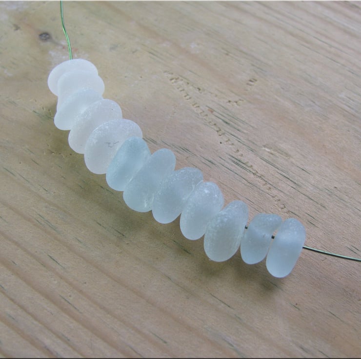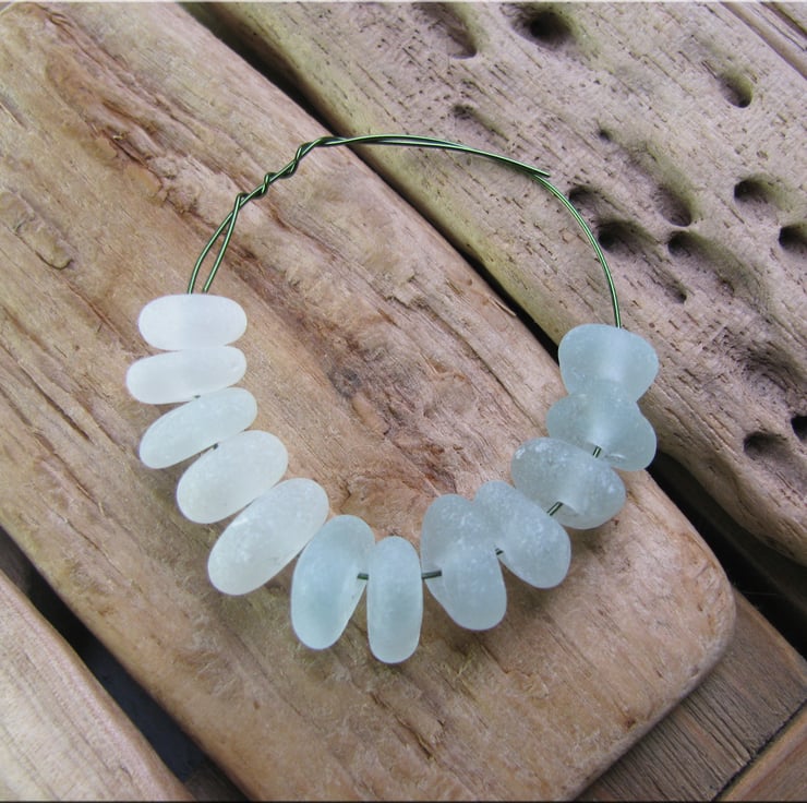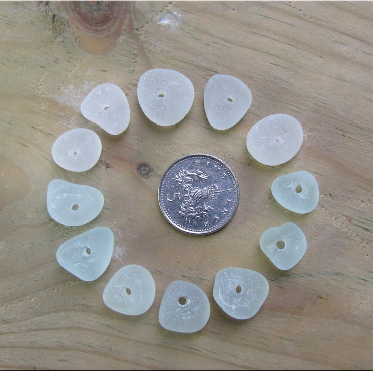12 Natural sea glass beads, middle drilled, chunkies, supplies (23)