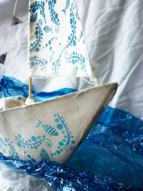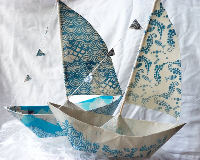 Sailing the ocean wave my blue and white handmade Papier Mache Boats are a delight to make and look beautiful in the house or in your boat if you are a lucky sailor!