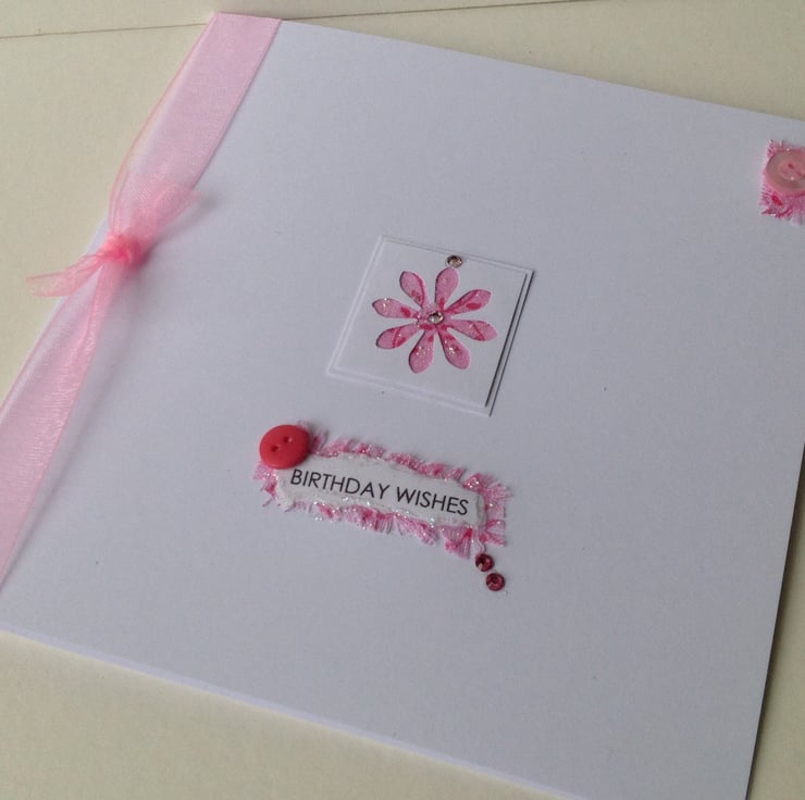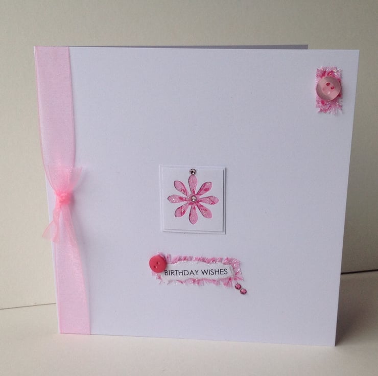 The design is made up of a square mount in the centre of the card,with a little daisy shape,cut out, featuring crystals