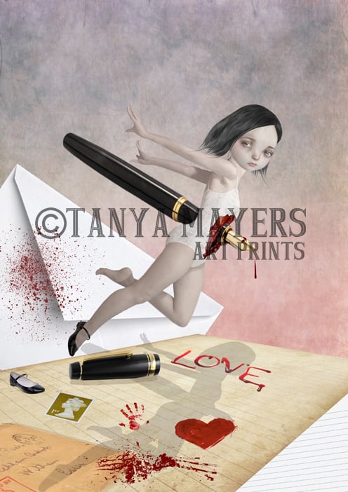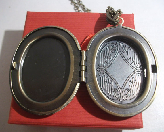 Art Locket Necklace to the front of locket sealed in resin is my art piece 'Written In Blood'