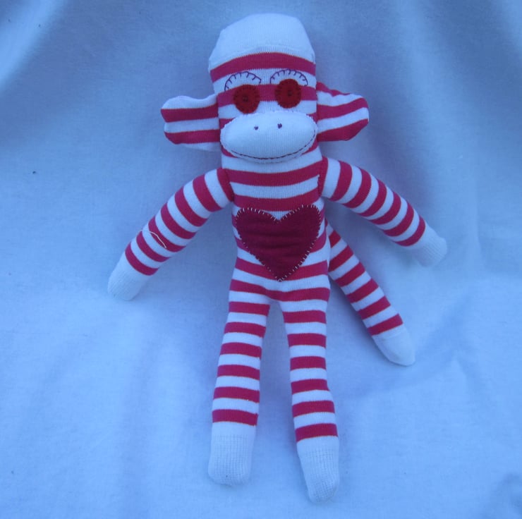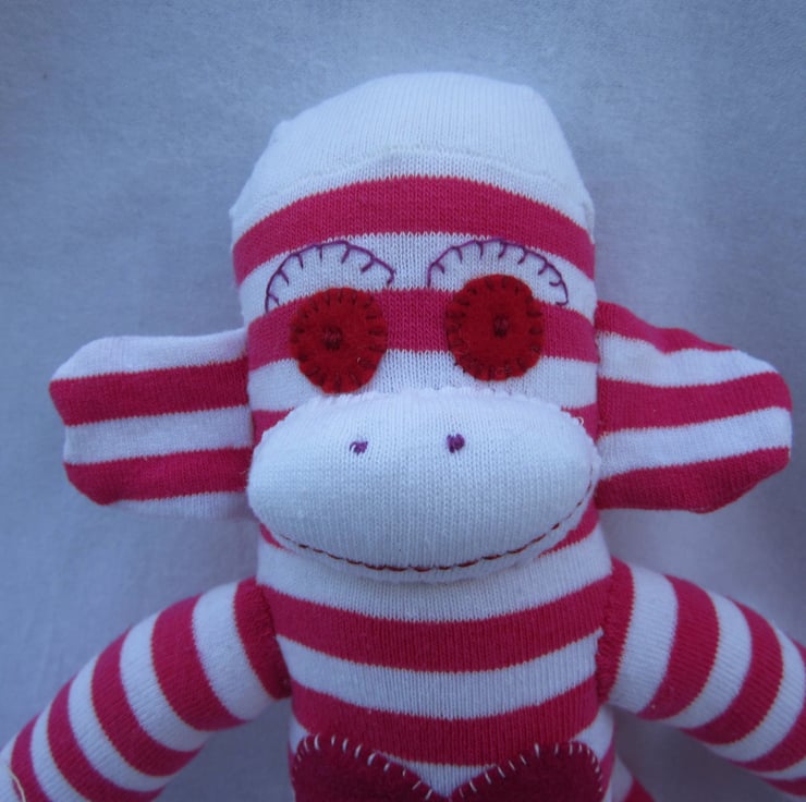 I love making socks monkeys! They all have such individual characters, depending on the fabrics used and the facial embroidery employed. Each has it's own personality and no two are alike.