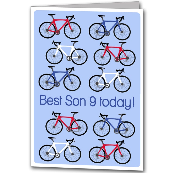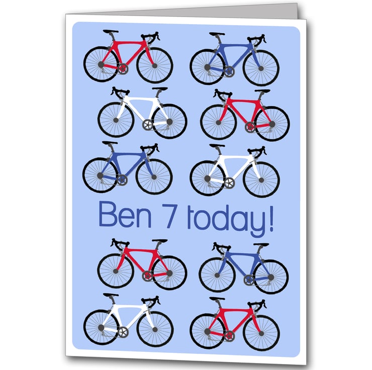 This boys bicycle inspired birthday card can be personalised with any name and age on the front. Especially for a boy with a love for cycling or maybe a brother or son who loves to race round on his bike!