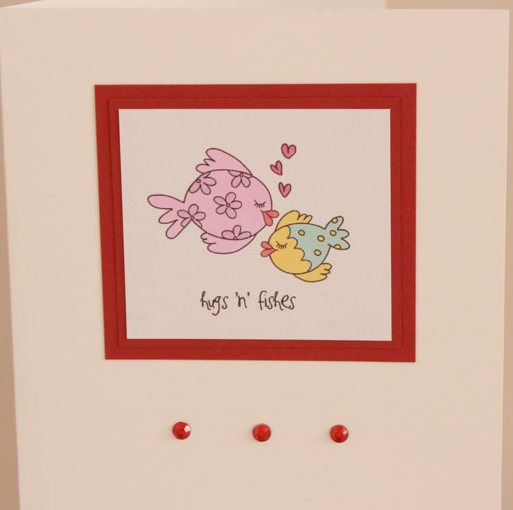 Love card for someone looking for something a little different. The card could be used as an anniversary card, Valentine's Day card or just to let someone know you care. The card features a coloured image of two fishes and measures approx 17 x 12.5 cm (7 x 5 in). The inside is left blank for your own message.