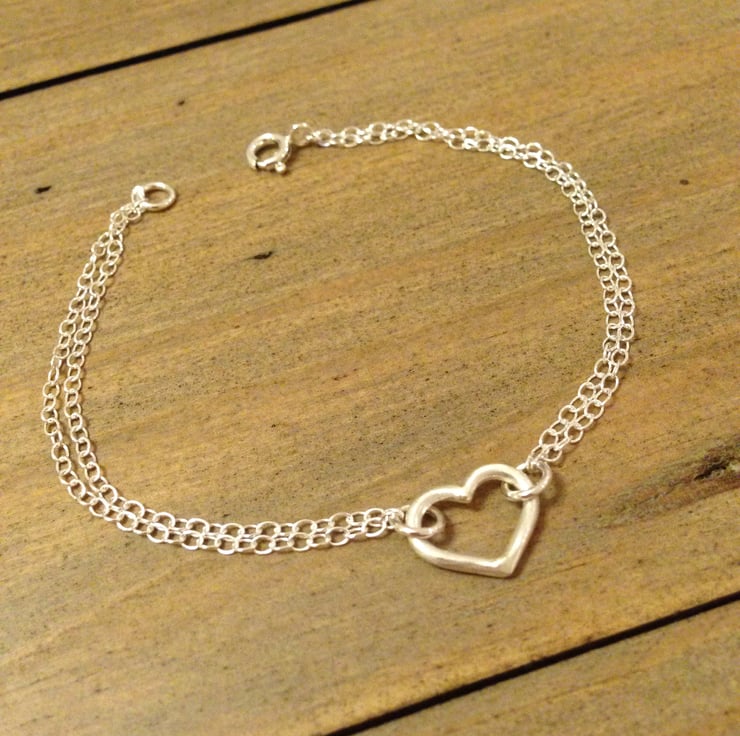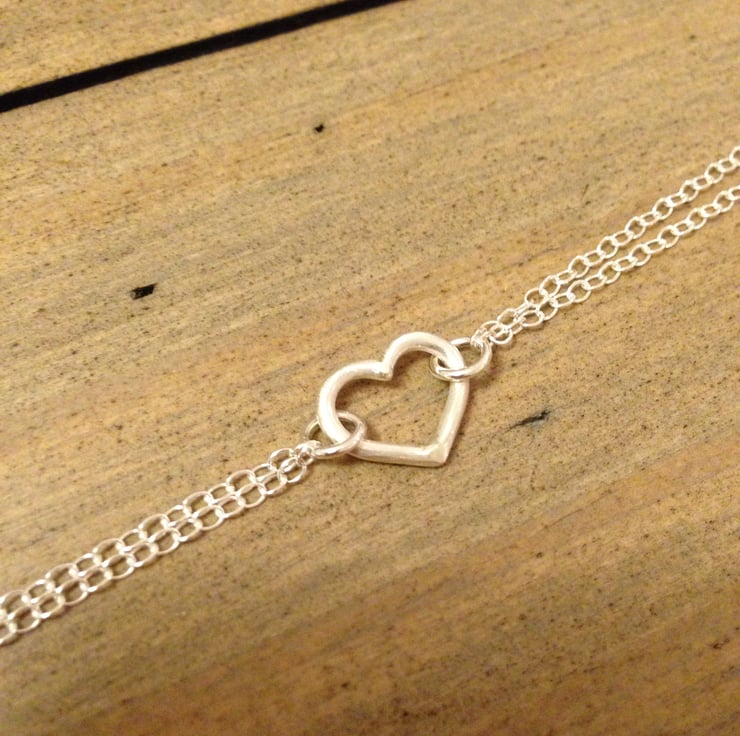 Part of our popular Love Hearts collection, this dainty bracelet will make a pretty addition to your jewellery box! A simple sterling silver heart sits amongst two strings of delicate trace chain and hangs beautifully.
