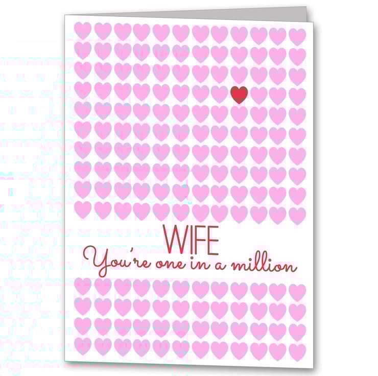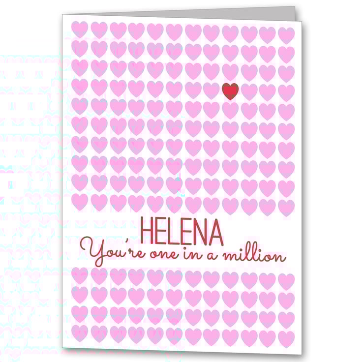 This Valentine Card is perfect to let your loved one know they are one in a million. Make them feel even more special by personalising it with a name. Alternatively it can say 'For my Wife' or Best Girlfriend'. You may even have a little one that would like to send a Valentine's card to their Mummy!