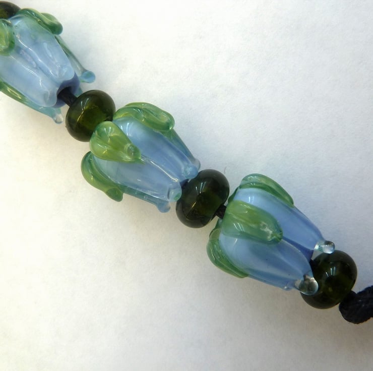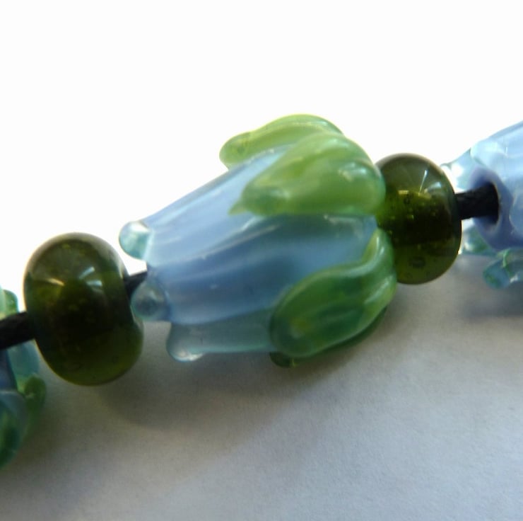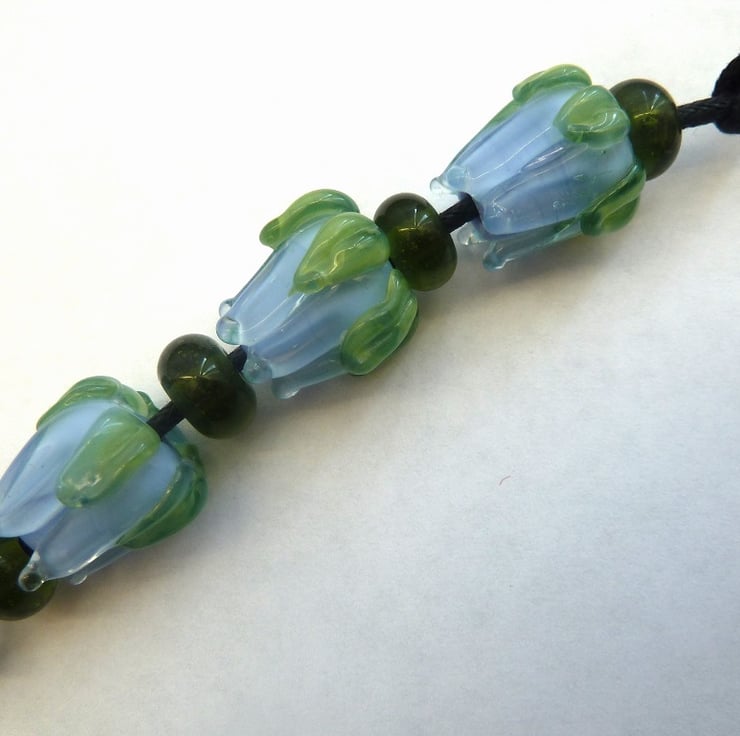 A set of 7 handmade lampwork glass beads which features 3 roses and 4 spacers.