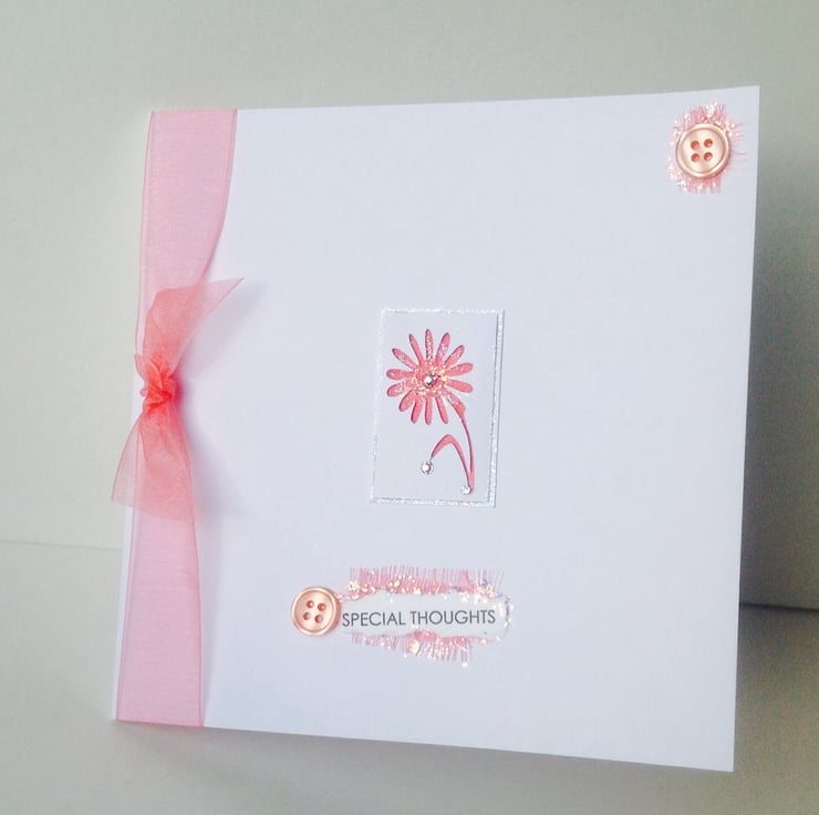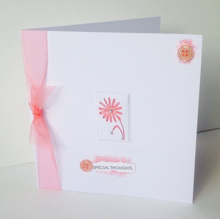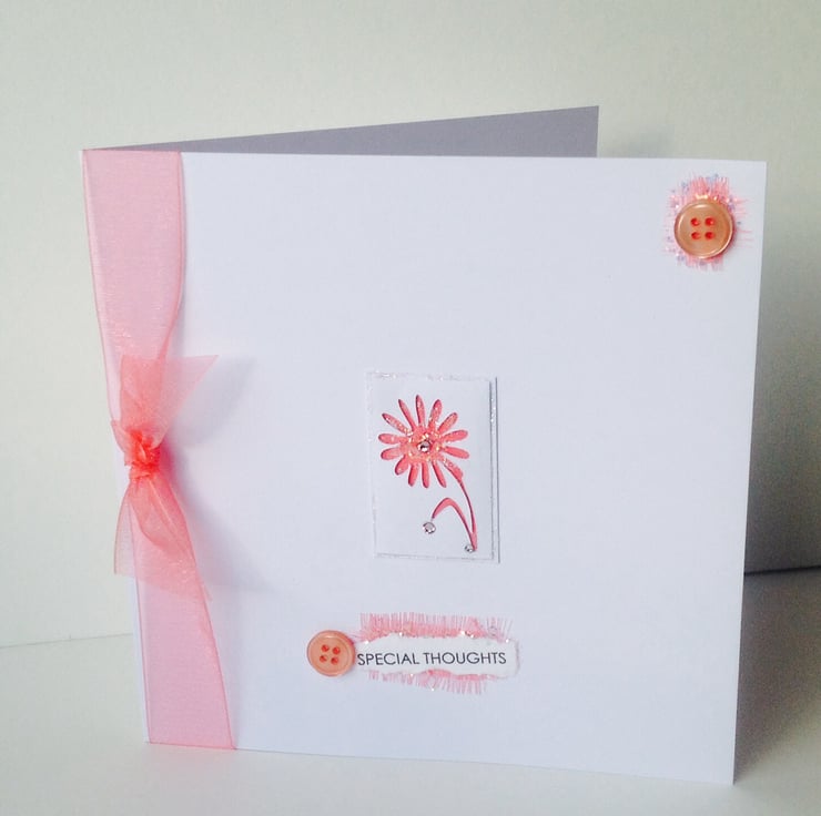 The listing is for a handmade greeting card, for special thoughts, or open greeting, it can be personalised.