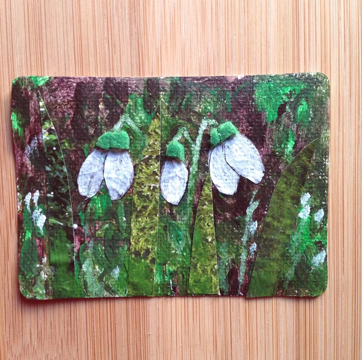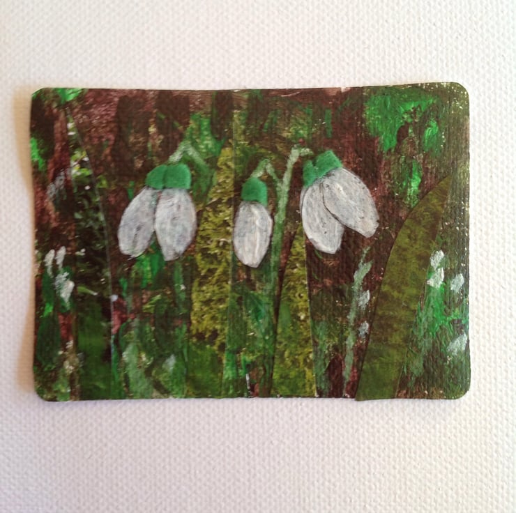 I wanted to create an ACEO from a range of media and was inspired by the snowdrops beginning to appear in my garden.