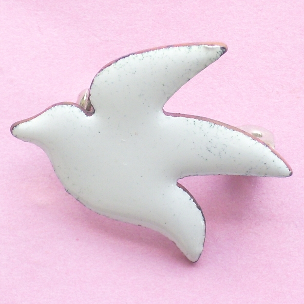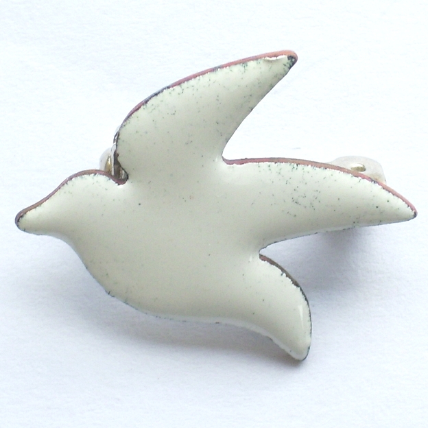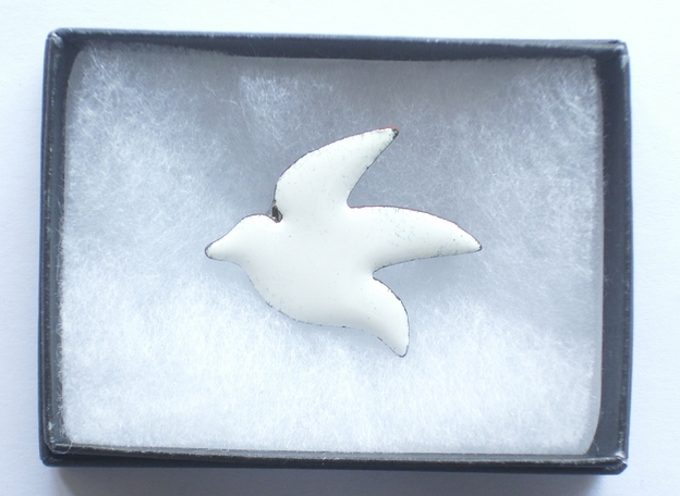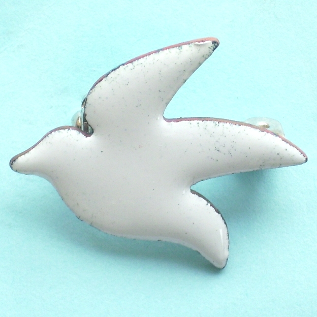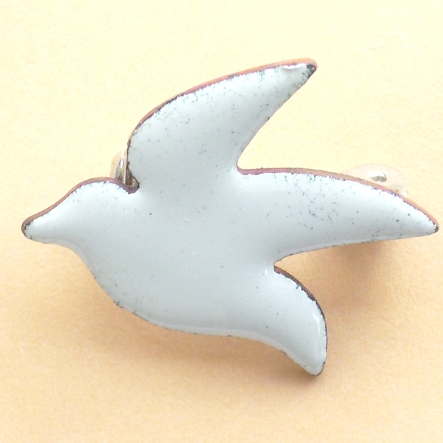 To make this brooch I built up layers of white enamel on the copper bird shape.