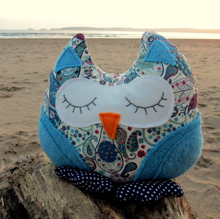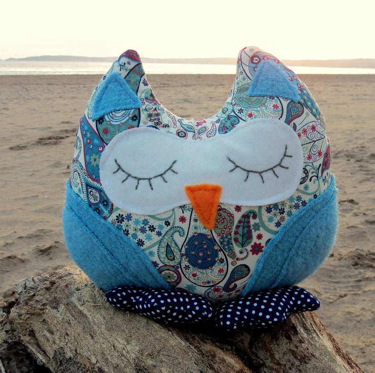 Paisley Blue is a snoozy owl doorstop.