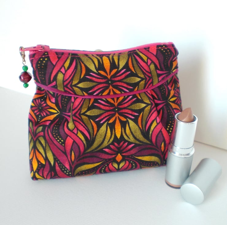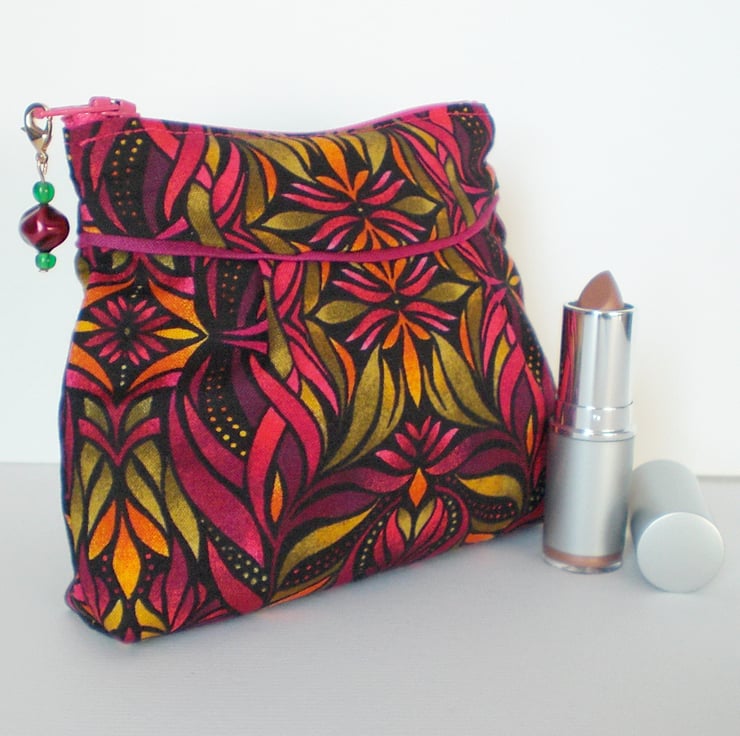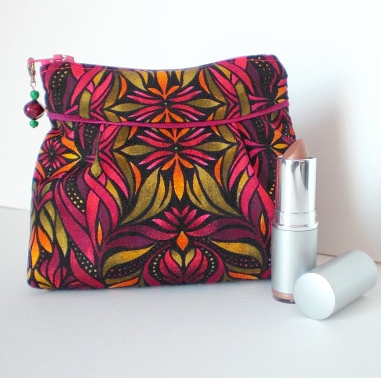 A small make up bag made in a beautiful cotton fabric.